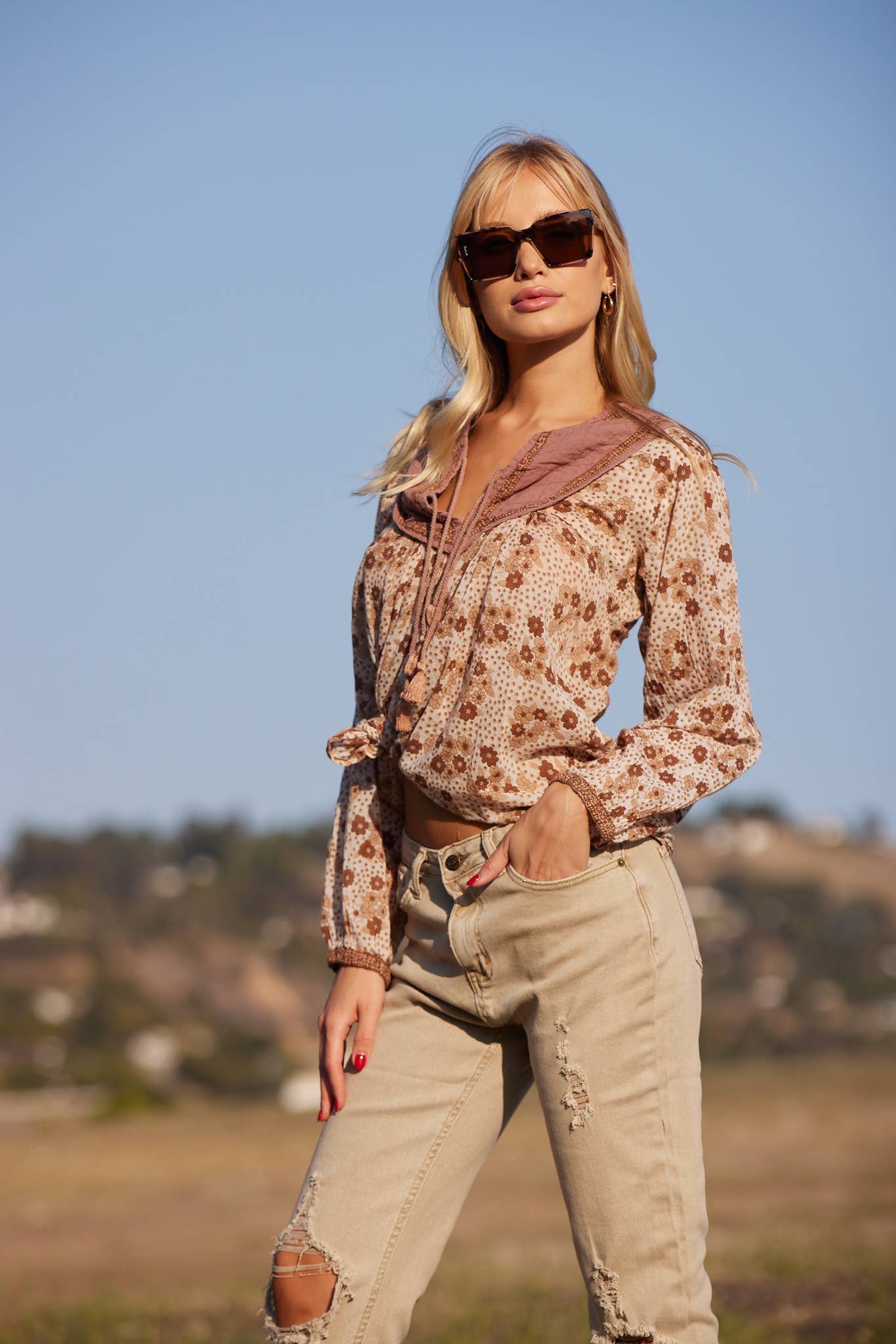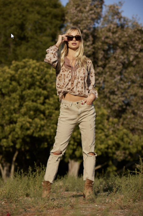 The Charlotte blouse with long sleeves is a floaty and very feminine piece, designed for effortless elegance. Pair with classic denim shorts and statement ankle boots for the perfect look this summer.