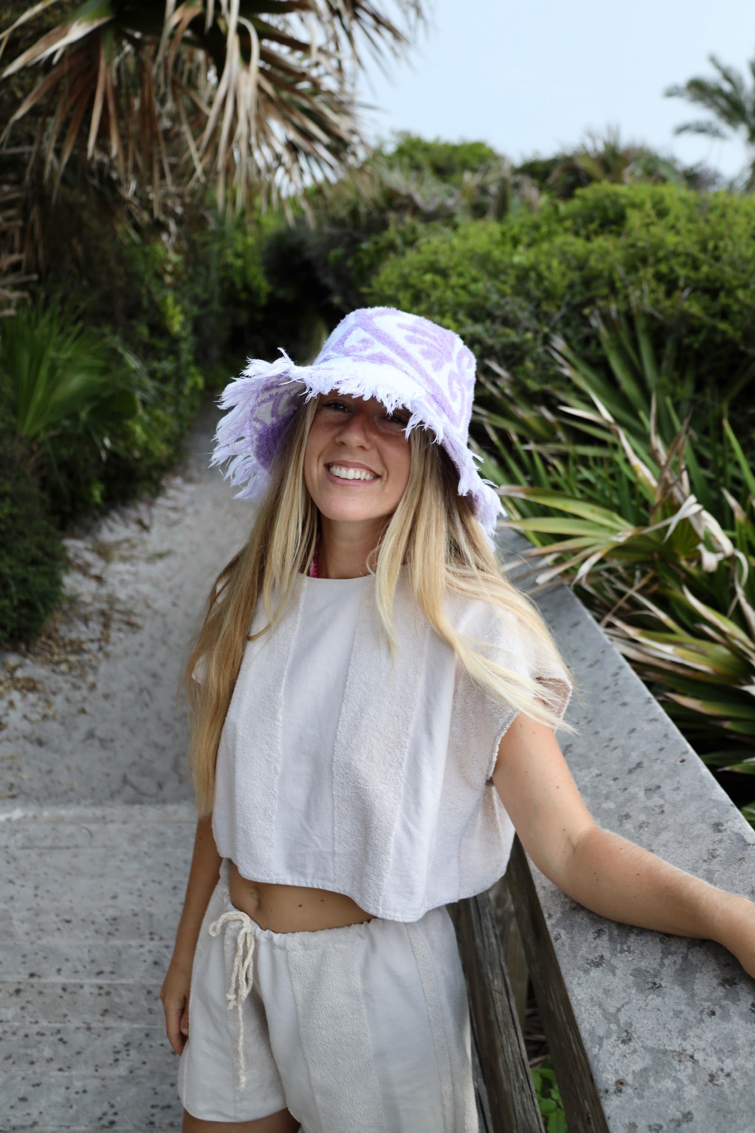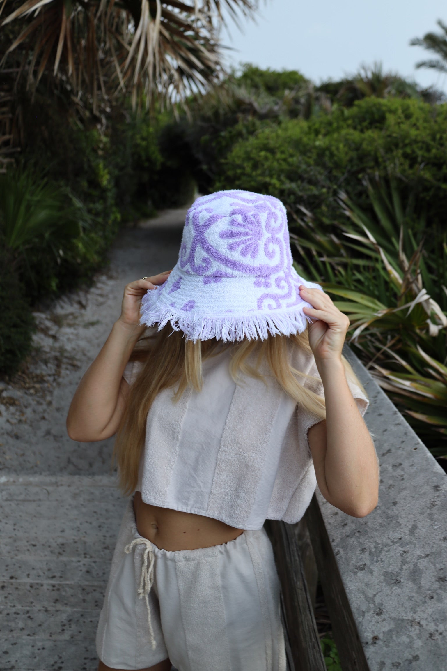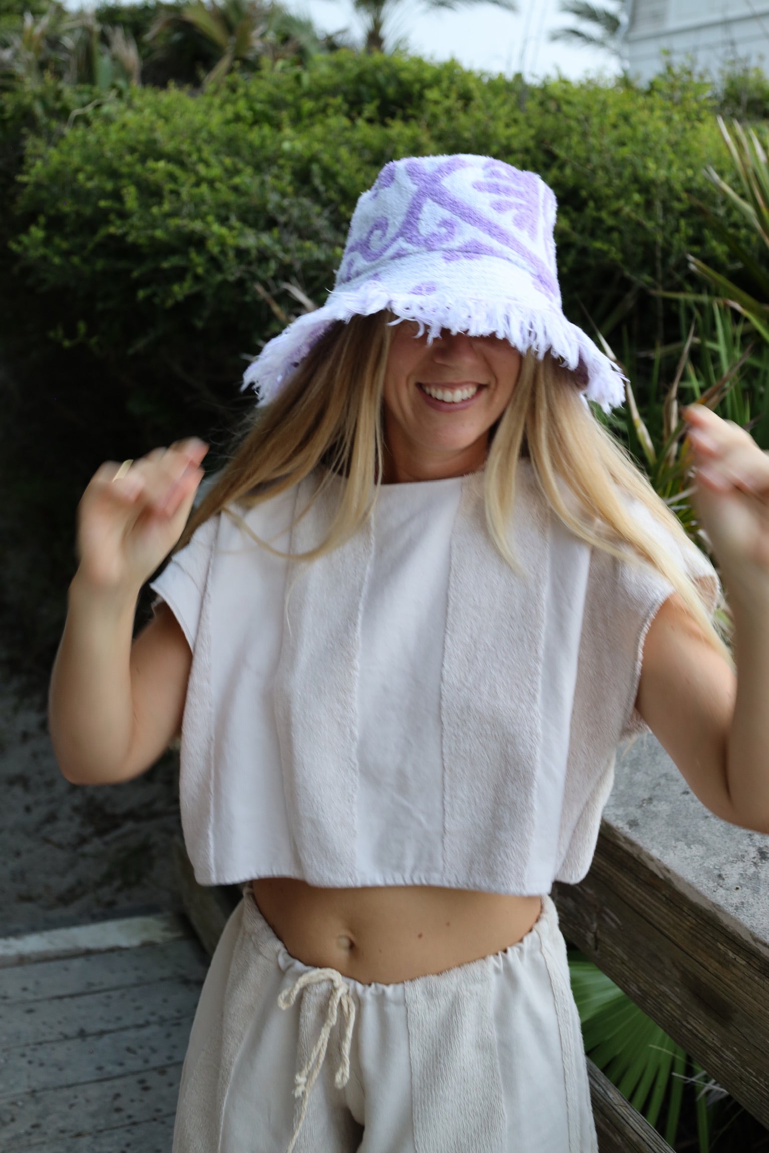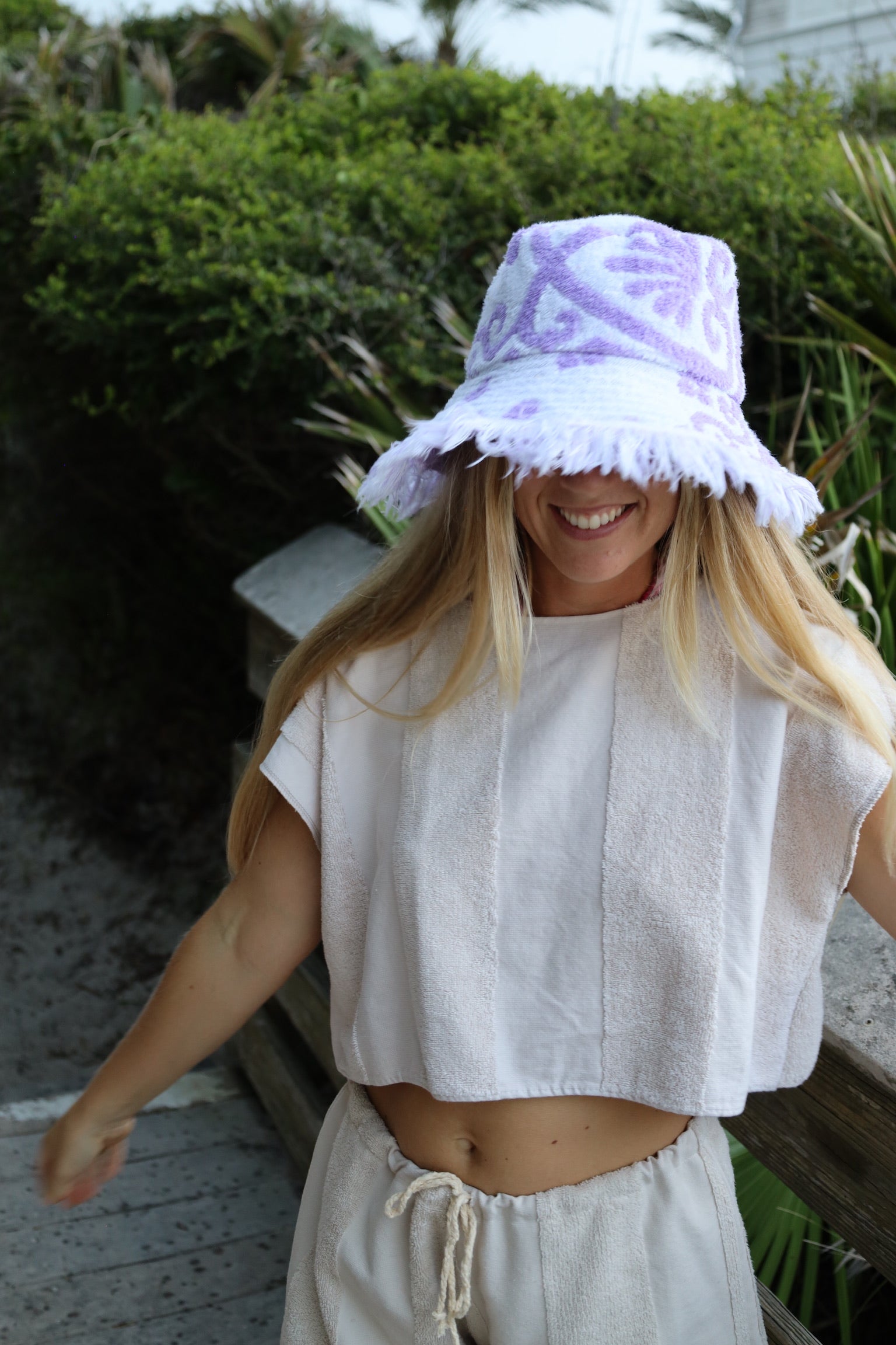 Purple & White Towel Bucket Hat