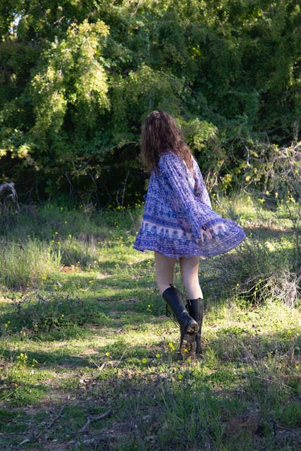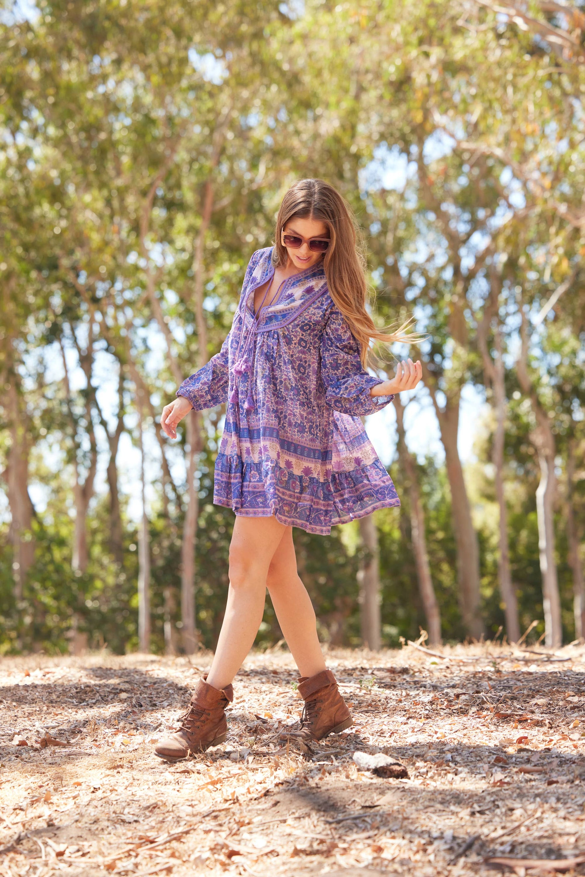 Our beautiful Sienna dress with its signature Blue Boheme silhouette and beautiful blue color is an unforgettable beauty and the ultimate bohemian glamour.